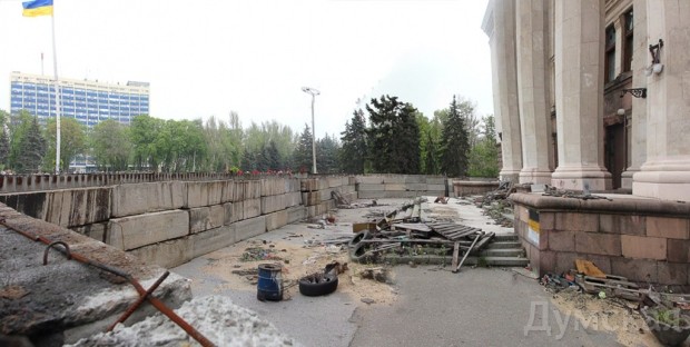 Забор вокруг Дома профсоюзов усилили бетонными блоками по технологии Скорика